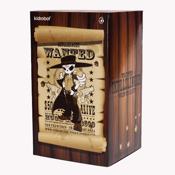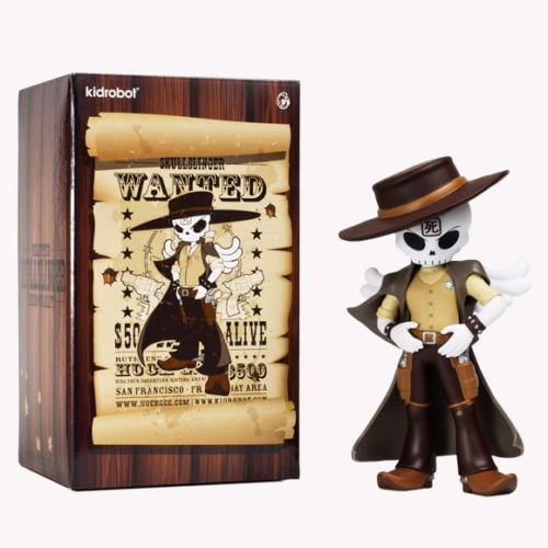 Ruthless and rugged, Skullslinger may wear a sheriff's star, but he's more outlaw than judge. Shading his hollow eyes under a broad rimmed hat, this winged vinyl rogue stands 11 inches tall, ready to draw with vultures circling overhead, the wind billowing his coat and the setting sun bouncing off his spikes and spurs. Skullslinger Blondie looks more bad than good, and is anything but ugly.