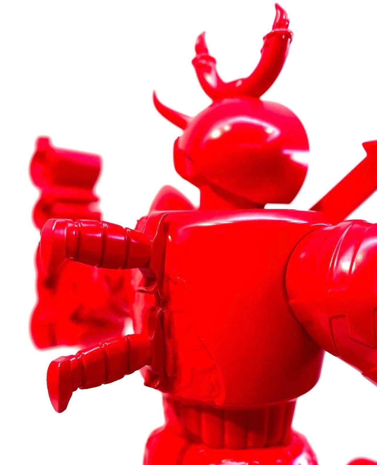 Tristan Eaton’s Blood Lord 24″ vinyl art toy with 3DRetro. The second edition of Eaton’s Vice Lord, the crimson red edition evokes the spirit of the sculpt which he describes as the ‘patron saint of self destruction’. The free-flowing figure is rich with symbolism from a life led on the thrilling, decadent edge. As with his murals, Eaton juxtaposes varied references from cultural symbols to well-known idioms (‘burning the candle at both ends). Stylistically inspired by Japanese robots and anime, the Blood Lord is a creative self-portrait of the artist’s past.