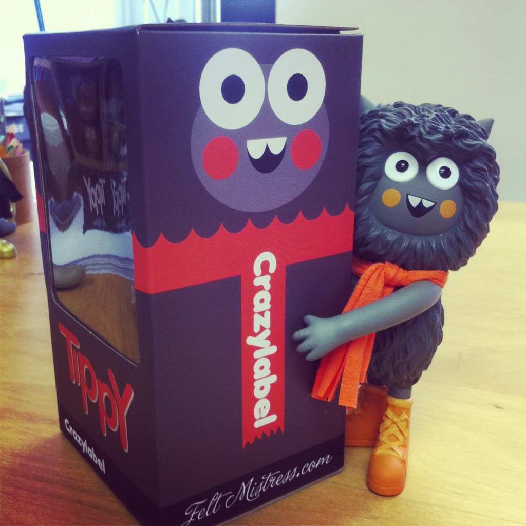 Tippy is 6 inches tall and comes packed in printed window box. From Crazylabel.
