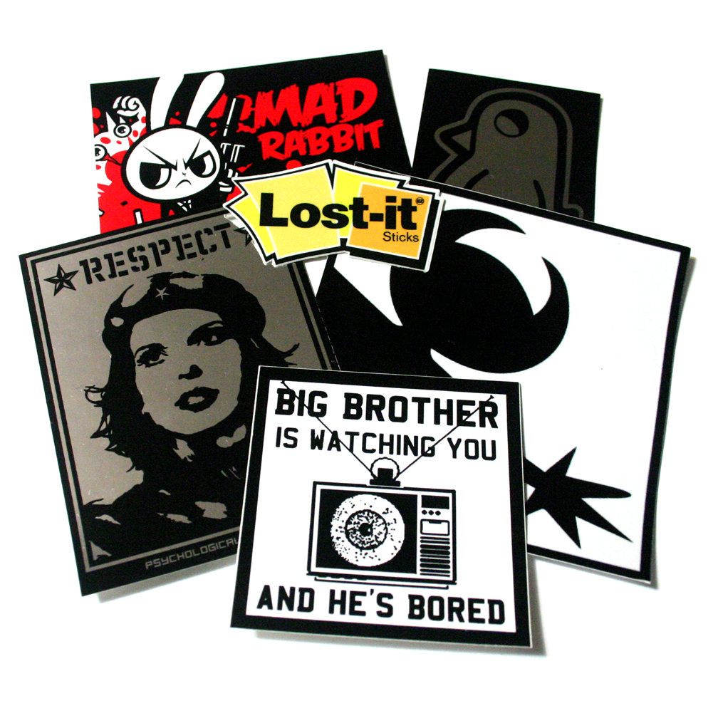 Designer Stickers are made in small runs and are normally only available by direct trade between Sticker Artists. Discordia Merchandising made special arrangements with each Artist involved to bring these unique works to the public.