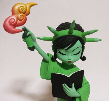 Celebrating the anniversary of the original figure from 2007, artist Erick Scarecrow has released the new 6.5" vinyl Little Liberty collection. A popular collectible, Liberty, she is a symbol of artistic freedom and a reminder to any artist to embrace the power of artistic expression. Little Liberty is available in Mint and arrives packaged in an open box and blister tray. For Ages 15 & Up.