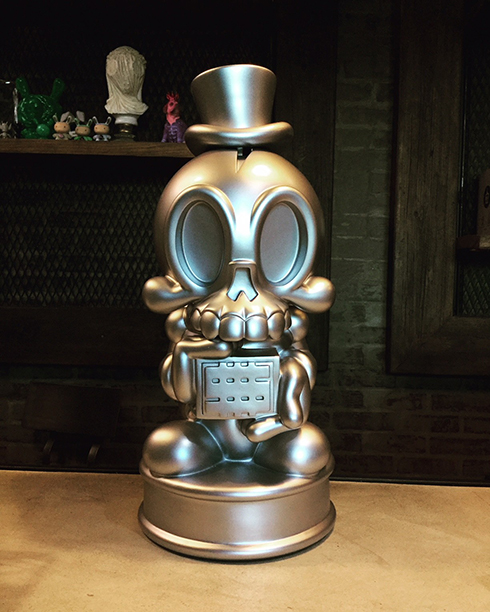 The Modern Hero character has taken on many forms over the years, and the latest version is a new 18 inch tall bank! This massive piece of plastic is the perfect place to store your change while saving up for that next piece of art.