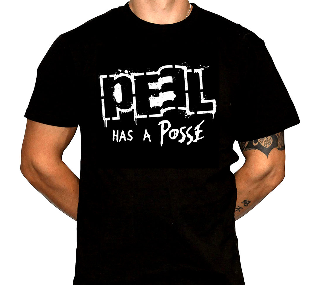 PEEL Has A Posse on Unisex Gildan Ultra Cotton Black T-Shirt. Front printing in sizes S, M, L, XL, 2XL, 3XL, 4XL, 5XL