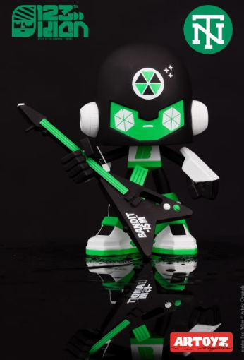 Decorated with a handful of geometrical shapes and logos of their composition the first vinyl creation from 123Klan is a perfect crossover between their vectorized characters and their unique typographical world.