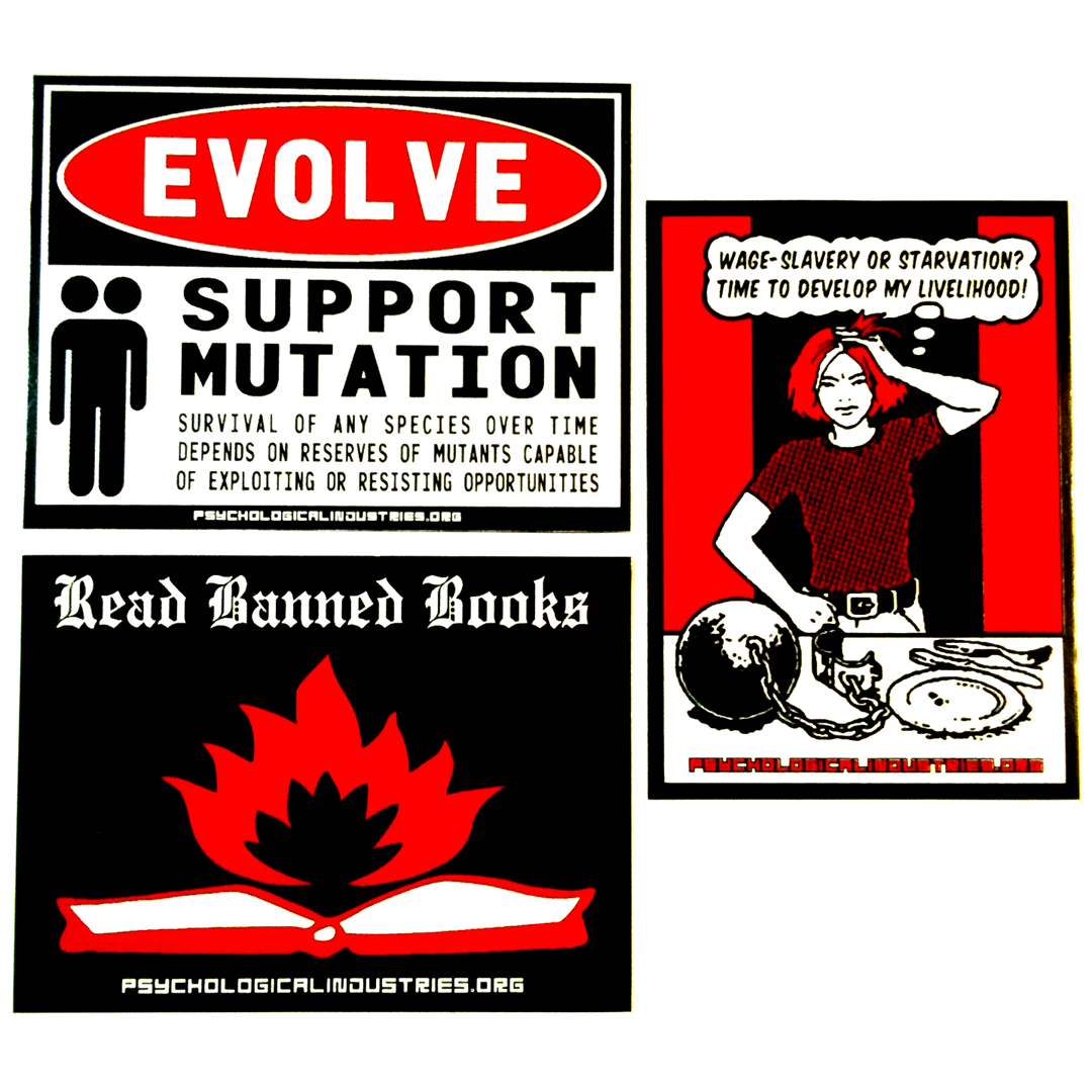 Being a set of Vinyl Stickers with a modern twist on the themes of youthful rebellion from decades past. Punk sentiments for the new millennium.