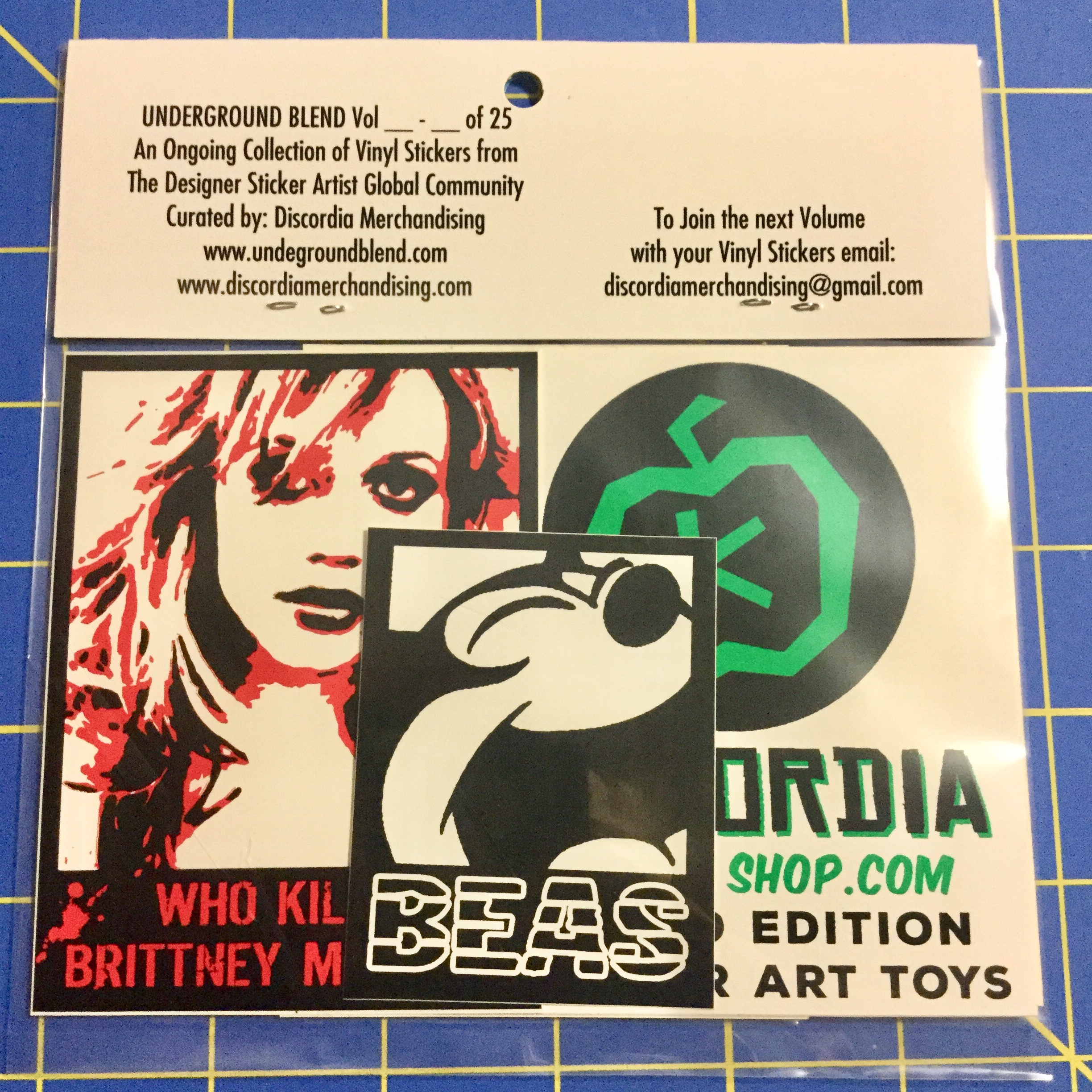 An ongoing collection of Vinyl Stickers from the Designer Sticker Artist global community. Curated by Discordia Merchandising.