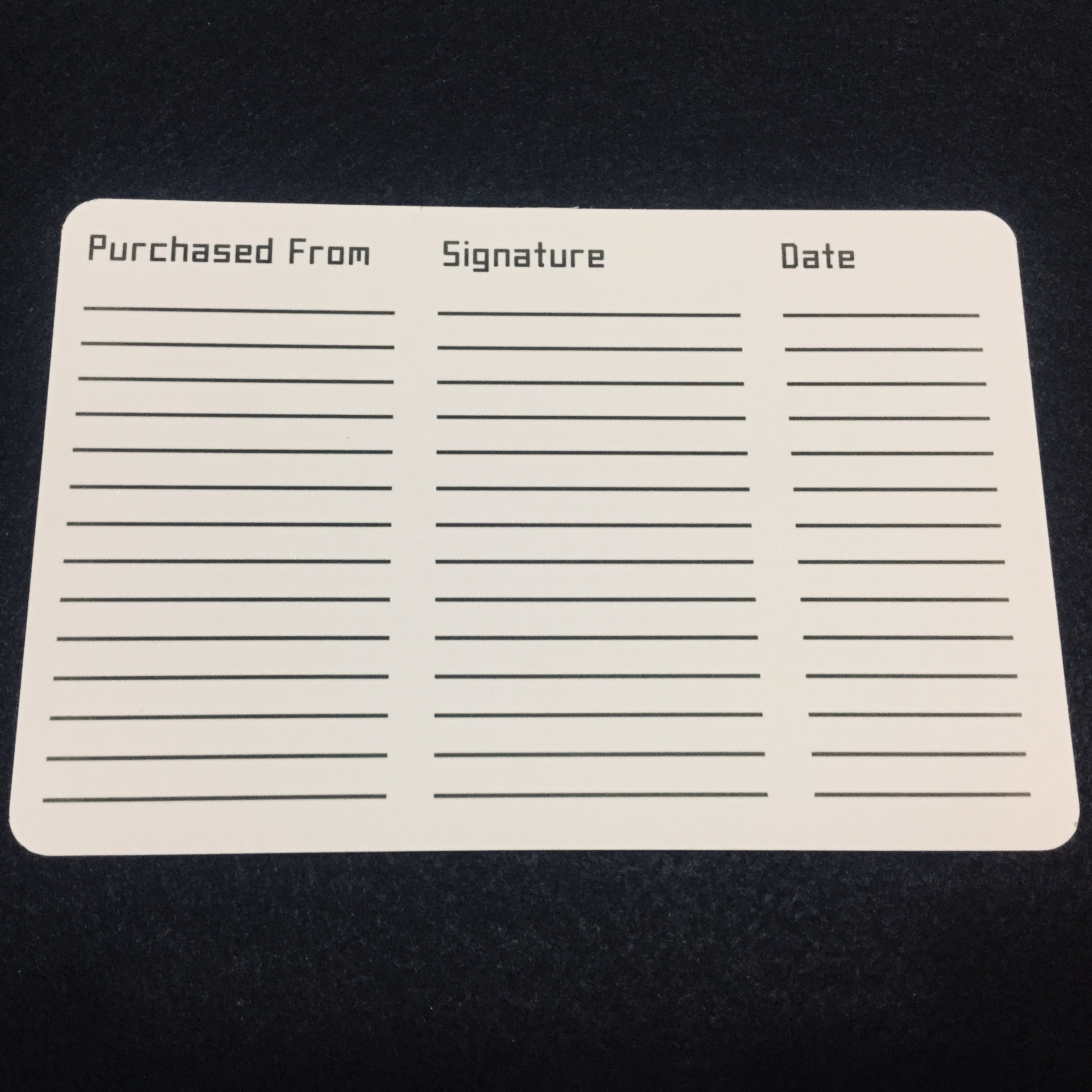 Standard Postcard sized 4x6 inch Registration Cards for all your Designer Toys. Non Glossy stock ensures all writing instruments will work on these cards.