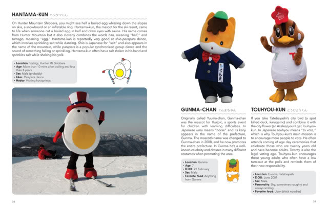 Being chosen to fill the role of a kigurumi is a chance at local stardom, as the authors explain in their introduction: "The characters have background and personalities. Blogs and websites are made, merchandise produced, and they regularly make appearances at events and on television. Some even release books and have Twitter accounts."