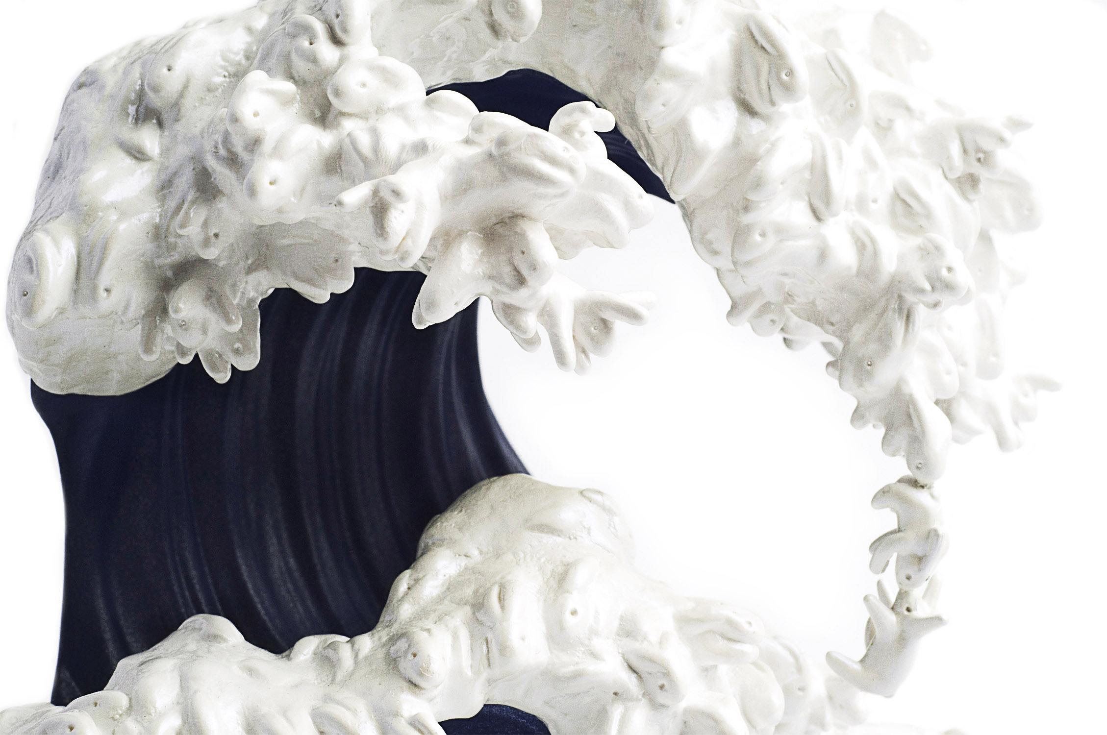 After overwhelming demand for the first two editions, Munky King brought back Uprisings with a new colorway featuring dark blue metallic water cresting into pearlescent white bunnies. Can be displayed alone or used as bookends.
