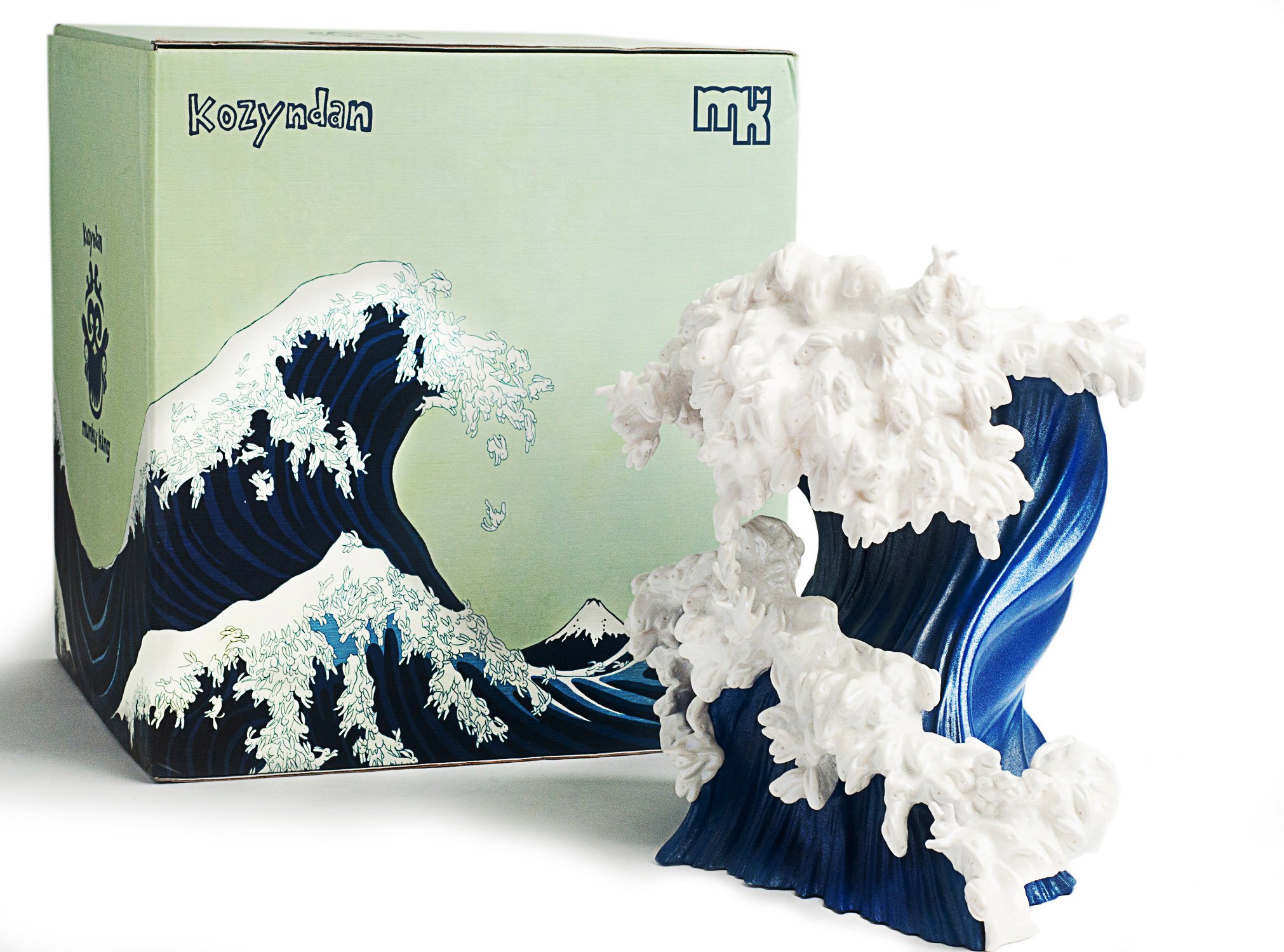 "Uprisings" by Kozyndan originated as an illustration inspired by the classic Hokusai woodblock print, "The Great Wave off Kanagawa." Munky King has transformed the piece into a unique vinyl sculpture that playfully mixes classic Japanese art with the whimsy of pop surrealism.