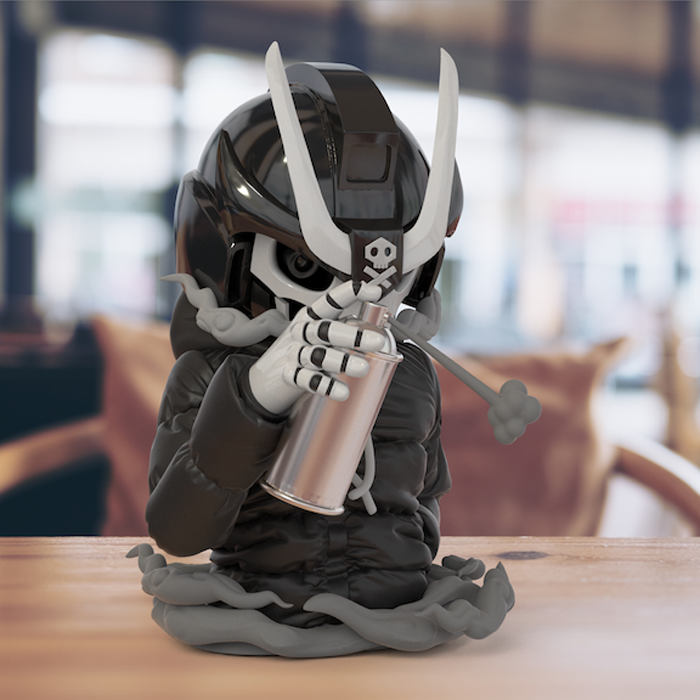 Martian Toys presents Ravager by Quiccs. Ravager is the arch nemesis to TEQ63. Entirely synthetic and programmed to take over the world. This half torso is ~ 7.3" tall and is full vinyl production. Each Ravager will include a special authenticity card signed and numbered by the artist, Quiccs himself. It will also include set of stickers for the spray can that you choose to apply or save for a rainy day in 2029.